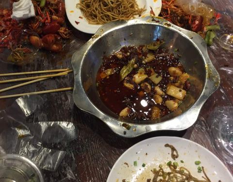 还可以,味道有点咸,不过新吃了个泥蒿,味道很神奇,有兴趣的可以试试,都是剩盘子了。