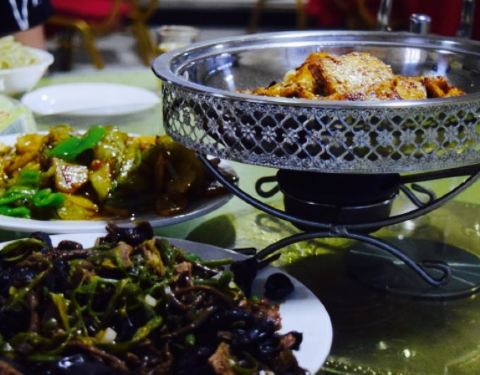 酒家就在加油站附近,四周都是饭馆,庆丰园几个大字非常显眼。餐厅里面并不算大,都是大圆桌,我们12人选了门口那张最大的桌子就坐了下去。凉拌柿子,实际上就是凉拌西红柿,让我想起了儿时西红柿的味道,香糯,如今的番茄感觉都没熟生硬生硬,孜然牛肉不比孜然羊肉差,而且都是瘦肉,小小的土豆很糯,根本不够吃,这家店卖的酸奶也是分外美味,饭后吃上一份犹如在吃哈根达斯,哈哈。