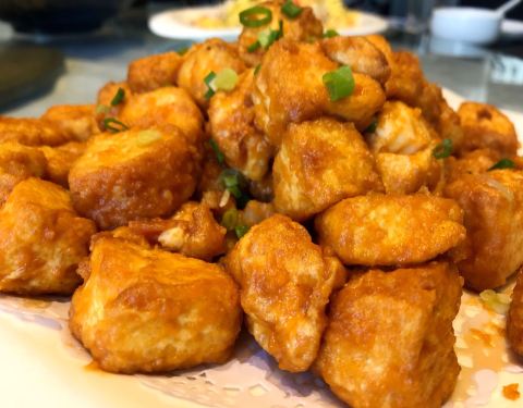 周末中午饭点过来,幸好提前定了包间,不然绝对没有位置,店里大小包间特别多,好多人选择这里家庭聚会,我还瞄到有个包间里面有个豪华的旋转餐桌 菜品不贵,味道中规中矩,点了好几个店家招牌推荐菜品,只有神厨还是厨神豆腐值得回味ಠ_ಠ,嫩豆腐过油再用蛋黄焗一下,香酥嫩都占了