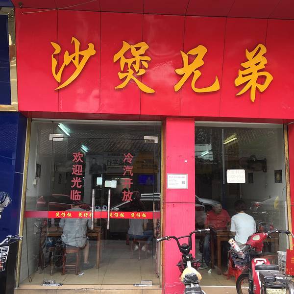 沙煲兄弟是远近闻名的网红煲仔饭,价格并不贵,一点钟走进店里,大堂里还满是人。本着不懂就要问的原则,我仔细问了老板怎么吃才好吃。老板跟我推荐说,可以按照自己的口味拼两种味道。我点了店里最豪华的煲仔拼饭,在老板的推荐下,加了一个窝蛋,两个人也不过才50块。煲仔饭因为是现煮,等待的时间比较长。黄鳝非常洗滑,但是中间的那条大骨头完全没有剔,刚刚逛过顺德菜市场的我,对此表示不可思议,顺德人在菜市场里面,鱼骨和鱼肉都剔开,分别卖的,已经被顺德人刀工养叼了的我表示,完全不能接受。建议不要点黄鳝,田鸡还行,不算太坑。牛肉拼腊味的话,牛肉很嫩滑。但腊味,特别是蜡鸭,稍微有些油哈口的味道,给人感觉不太好。 以食材的优良程度来判断,可能并不能算是优,但是这个价格相对这个味道来说,性价比应该是高的。 酱汁的调味和锅巴都非常的恰到好处,给整体增添了不少分。认真说,味道也就普通。这次是被大众点评骗了一波。