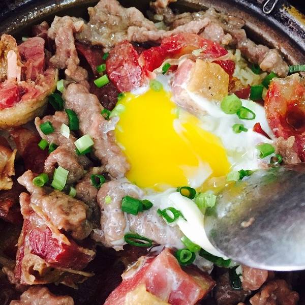 - 窝个蛋拌一下很赞,煲仔饭很香特别喜欢饭焦,腊味饭也是既实惠又好吃,腊肠很下饭,另外每份饭都配了...
