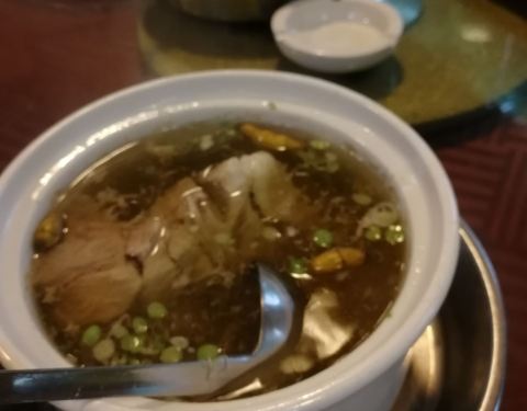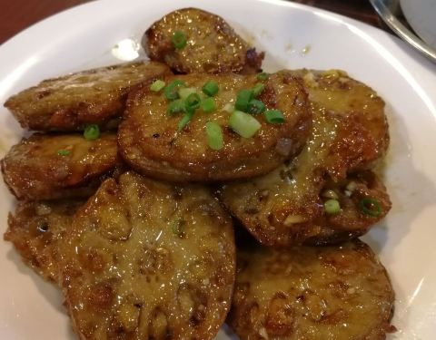 彩盈私房菜,位于东莞中心,后来才看到,就在东华中学旁边不远,中午快一点才来,居然还是那么多人,而且是络绎不绝,看来是名声在外啊!主打碌鹅,客家豆腐,都点了,豆腐超级嫩!碌鹅也不错,后来又点了新出品的菌菇油盐盘,味道一般,不值得尝试!