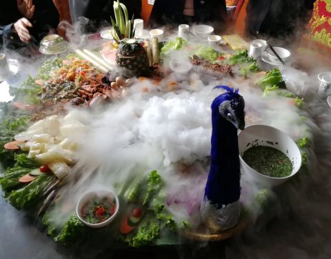 各种傣味美食汇聚,一场饕餮大餐。环境不错,服务态度也好,漂亮的孔雀宴让人眼前一亮