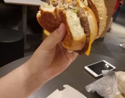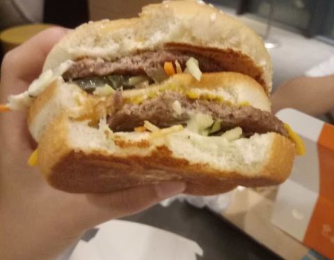 买了双层芝士汉堡和麦旋风。麦旋风味道没差。但是双层芝士太咸,又小,不仔细看以为只有一层。感觉像是一块肉硬生生切成两块的。