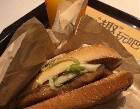 感觉像是一块肉硬生生切成两块的。但是双层芝士太咸,又小,不仔细看以为只有一层。麦旋风味道没差