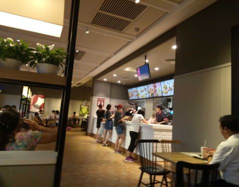每次来这里都非常多人,今天汉堡青菜不新鲜了。就一片焉掉的小小叶子,相比万达有点逊色了。