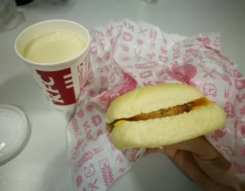 鸡肉帕尼尼豆浆套餐8元加4元有薯饼,早餐棒棒哒