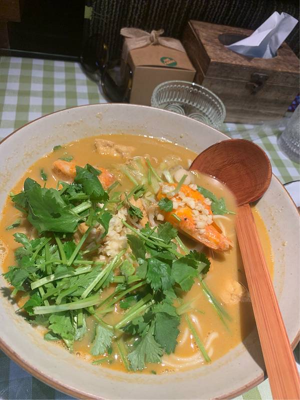 招牌八仙面:面、卤、菜是分开盛放的,可以自己根据口味调味,面是黑墨色的,很劲道,卤里食材丰富,有各种海鲜,口感很鲜很棒。猪骨汤面:朋友点的猪骨汤面,汤头很足,汤唯很浓,味道也不错。梅子酒:是自酿的青梅酒,度数不是很高,味道特别好