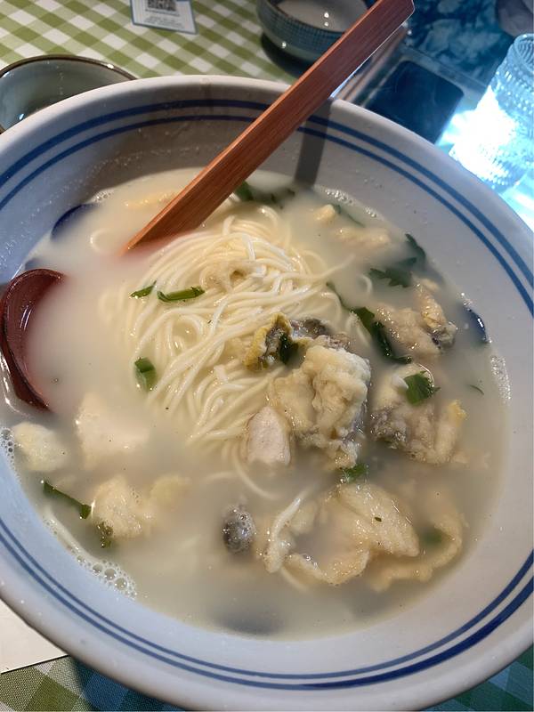招牌八仙面:面、卤、菜是分开盛放的,可以自己根据口味调味,面是黑墨色的,很劲道,卤里食材丰富,有各种海鲜,口感很鲜很棒。猪骨汤面:朋友点的猪骨汤面,汤头很足,汤唯很浓,味道也不错。梅子酒:是自酿的...