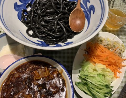 ...分开盛放的,可以自己根据口味调味,面是黑墨色的,很劲道,卤里食材丰富,有各种海鲜,口感很鲜很棒