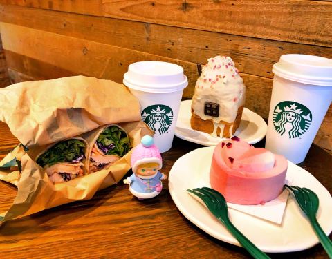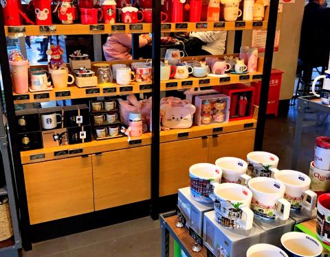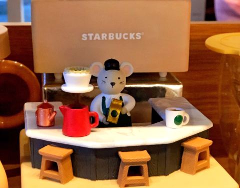 店里点单区域附近的角落放满了鼠年限定的杯子和周边,太太太可爱了!简直想all in! 佛系点了几款甜品和小食,两杯饮品,冬天就是需要满满热量~