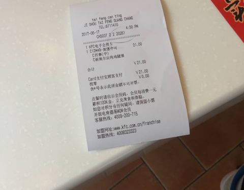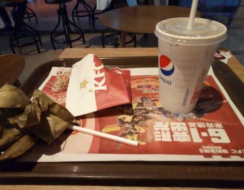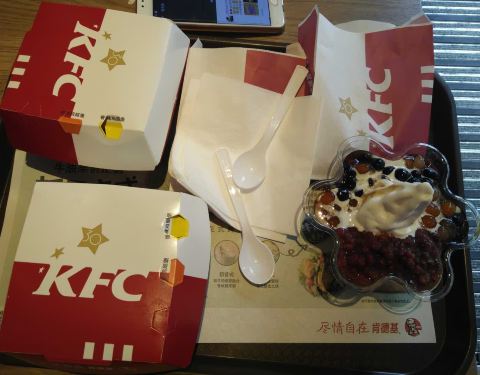 kfc边城店人多,要的饭饭都没了,转太丰店,手机点餐有点慢,幸好柜台客服动作快。抢到孩子想吃的夜饭