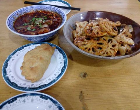 牛奶鸡蛋醪糟很好喝,正好解麻辣,洋芋格格挺香的,好像里面有洋葱沫。胡萝卜汁清爽,有种小时候冰棍的味道