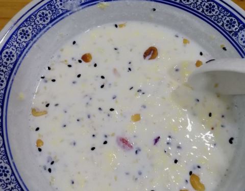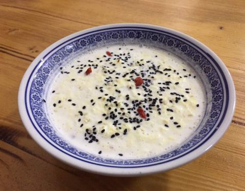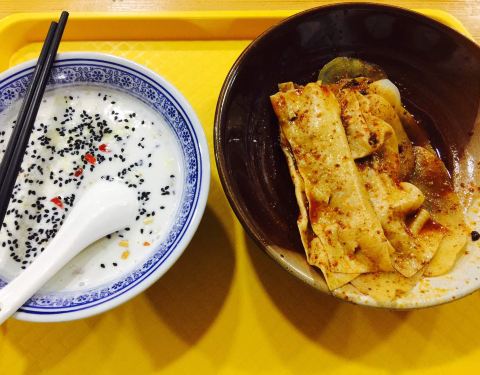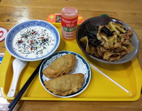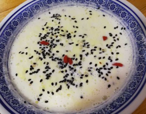 - 牛奶鸡蛋醪糟很好喝,正好解麻辣,洋芋格格挺香的,好像里面有洋葱沫。胡萝卜汁清爽,有种小时候冰棍的味道