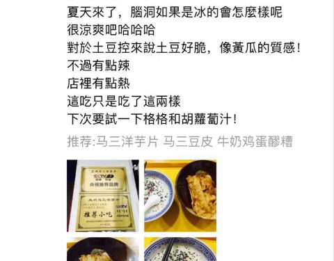 - 这个算是北京雍和宫那条街上的马三洋芋片,味道很正,甜胚子和牛奶鸡蛋醪糟都是基本款甜品,胡萝卜汁...