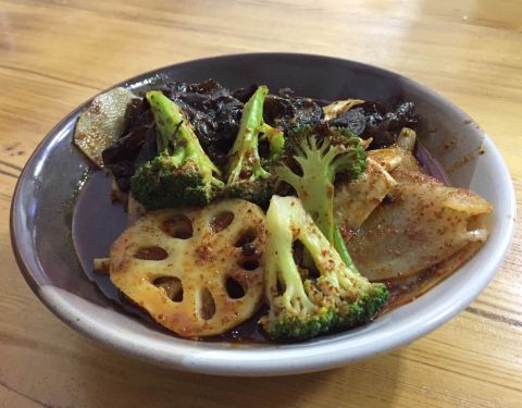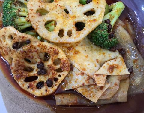 洋芋片脆生生的,豆皮很软糯,配了几串蔬菜,香辣味正好。牛奶鸡蛋醪糟很好喝,正好解麻辣,洋芋格格挺香的,好像里面有洋葱沫。胡萝卜汁清爽,有种小时候冰棍的味道
