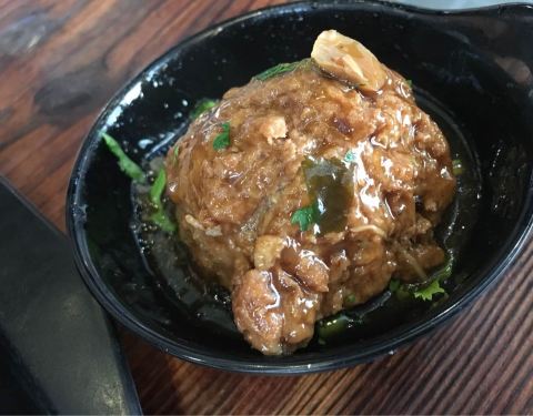 青岛游玩,看到美食推荐过来的,本来打算早上一大早来的,老公说早上排队人多,所以等到吃中午饭才过来,中午的时候人不太多,和老公点的海三鲜豆腐脑,味道很不错,