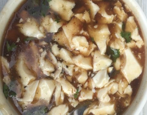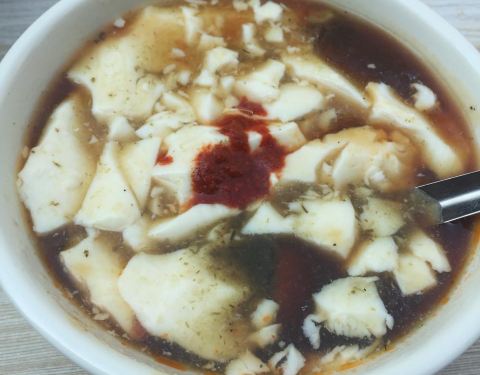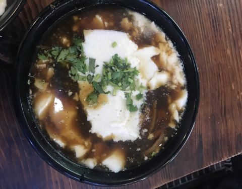 全聚仁的豆腐脑以卤汁浓稠著称,有丰富的配料。肉沫、木耳、花生、香菜、榨菜丁。吃一口豆腐脑,配一口火烧。是老青岛人的日常生活习惯,从这里开始元气满满的一天。