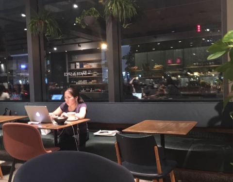 这家店的羊角面包十分有名,杏仁片真是裹满面包的每一个角落,味道挺好吃的,有些偏甜。 选了两份沙拉 三文鱼配牛油果、鸡肉能量碗,都搭配了黑米(米饭可选种类),整体来说味道不错,鸡肉更胜一筹,米饭的量也恰到好处。 环境是开放式的,很通透,店内应该是可带宠物的(看到邻桌有人抱着狗狗)
