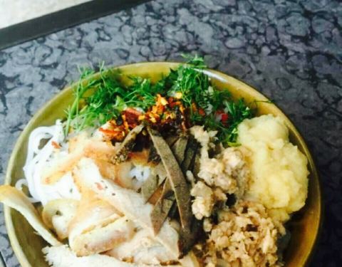 第一次来芒市,同学招待来这里吃手抓饭。各种当地小咸菜,商家做得很敬业,也十分热情的给我们讲解怎么吃。咸淡刚好,对面还可以吃卷粉,觉得不错。