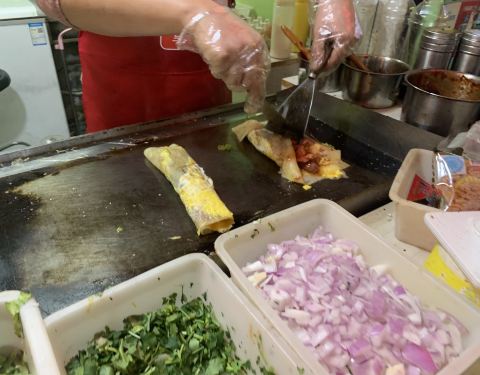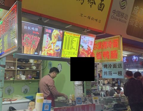 烤冷面有人排队,我也就跟着买了,味道不错,可选的配料很丰富,食材很新鲜,很好吃