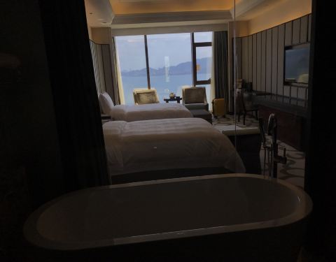 酒店设施及环境非常好,服务也不错。打开门,窗帘自动打开,被落地窗外的海景惊艳到了! 泳池是儿子的最爱了!还有大堂的日本料理味道也不错!但是在厦门岛外,还好厦门本身不大,到各个景点打车或公交都方便!