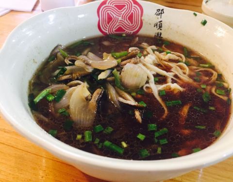 镇江的特色锅盖面,最有名和历史的品牌要说邵顺兴,点了爆炒长鱼面,面是手擀刀切面,很劲道,长鱼也就是黄鳝,爆炒入味,软嫩。加一点镇江香醋,更具风味。