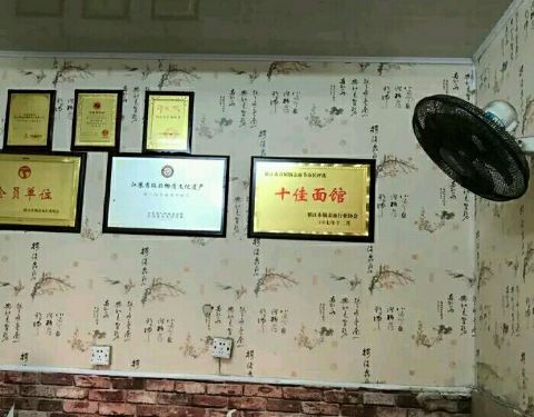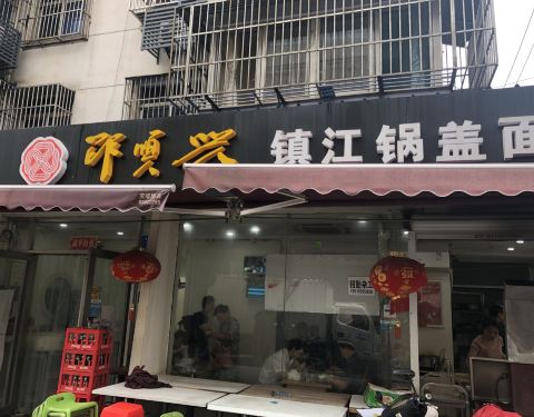 锅盖面是镇江的特色美食之一。一到镇江就可以看到铺天盖地的小店卖这个面的。这家据介绍是老牌子,位于市中心的八佰伴后面,店铺很小,环境可以说有点简陋。全家福面里好多小菜,腰子,香肠什么的估计8-9种,面条...锅盖面是镇江的特色美食之一。一到镇江就可以看到铺天盖地的小店卖这个面的。这家据介绍是老牌子,位于市中心的八佰伴后面,店铺很小,环境可以说有点简陋。全家福面里好多小菜,腰子,香肠什么的估计8-9种,面条粗细适中但不够劲道。肴肉挺新鲜的,里面瘦肉多,有些咸,6元一块不算贵。