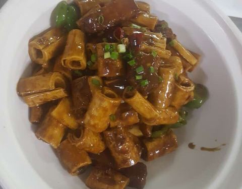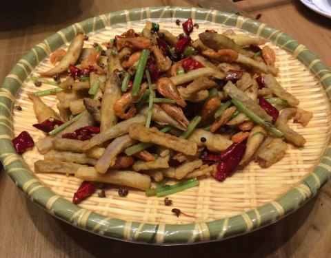 每年到园博园来观灯,都是在这家餐厅吃饭。 他们家的位置就位于园博园东门的路口,所以他们家的生意是最好的。 在他们家用餐不谈味道,谈的是实惠。 四季豆炒豆丝分量十足,味道鲜美。 泡菜苕粉肉丝泡菜很好吃,油汪汪的一大盆。 米饭也是一大碗。