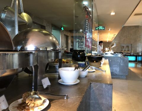 住店后专门过来吃早餐。地方挺大的。品种似乎不是想像中那么多。酥饼、油条、豆腐脑、小米粥等小食,个人觉得倒挺好吃的。 西点还行。四周景观可。餐厅旁还有专门让小客人玩耍的地方。