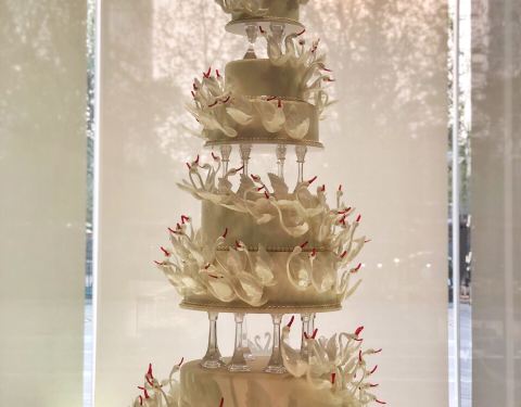 ఇ⃛* 4.10 ———ʚ 2018年4月小和在北京 ɞ———— 话说进到这家之前 并不知道是好利来的高端品牌 单纯是转地铁路过 看到外面很漂亮就进来了 店内整个环境可以用高大上来形容 已白色为主调 特别像卖钻戒的感觉 有一间专门喝下午茶的区域 大水晶吊灯 富丽堂皇 其实进来之前是被图2那个蛋糕吸引了 搜了下点评,一看价格 瞠目结舌 最小的要2999 探过这些甜品店 。。。 但是太美,还是决定进来看下 红心天鹅这款小蛋糕价格还是可以接受的 毕竟在这么美的环境下 品尝造型这么美,味道又很好的甜品 心情愉悦