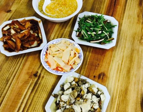 蟹老板一家是用心在做生意,这点体现在方方面面。比如,酒家是可以陆路到的,但是蟹老板会亲自驾快艇接送,一个水中漂移,稳中不失刺激。一路水镇渔家,风景如画,心情立刻放松下来。事实证明,在这样古朴的环境下用餐比在哪吃的都香。一进门,蟹老板一家热情相迎,我们不像是首次来就餐,倒像是来老朋友家串门儿。老板娘漂亮,得体,细心,周到,热心,大方,蟹老板有眼光??。一霎那间热乎乎的饭菜就上去了,螃蟹??️鲜掉眉毛,质量不是一般的好,母蟹黄多而实,公蟹膏肥而不腻。我们三人每人一对,外加一盘红油拌笋和水芹豆干,一份红烧茭白和蚌肉豆腐及一条清蒸白鱼,比较实惠的一家店΄◉◞౪◟◉‵。老板亲自送上三碗用自家种的南瓜煮成的南瓜粥,不要太香甜。老人家吃的喜欢,赞不绝口,我真是由衷感谢蟹老板一家,因为父母开心才是最重要的。她们的辛勤付出为我们一家圆满了此次旅行,从南到北飞越1000多公里,不枉此行。一对90后小夫妻把自家生意经营的有声有色着实让人钦佩。祝蟹老板一家阖家快乐,小宝贝健康成长,生意兴隆。