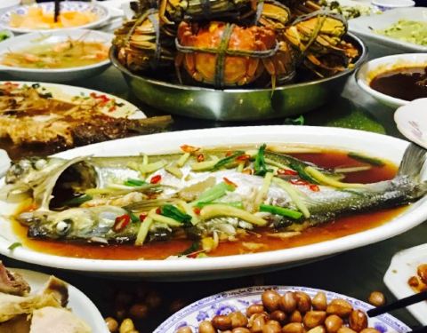 - 清蒸白鱼,特别的不错,肉质细腻,味道鲜甜,刺比较多。雌蟹黄非常好,顶盖肥。临近中午,赶到了这家蟹楼