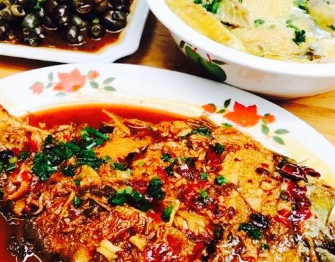 - 菜的味道也不错,鸡汤好吃,鱼也,菜的味道也不错,就螺蛳不大好,觉得有点泥土气什么的,没怎么吃,...