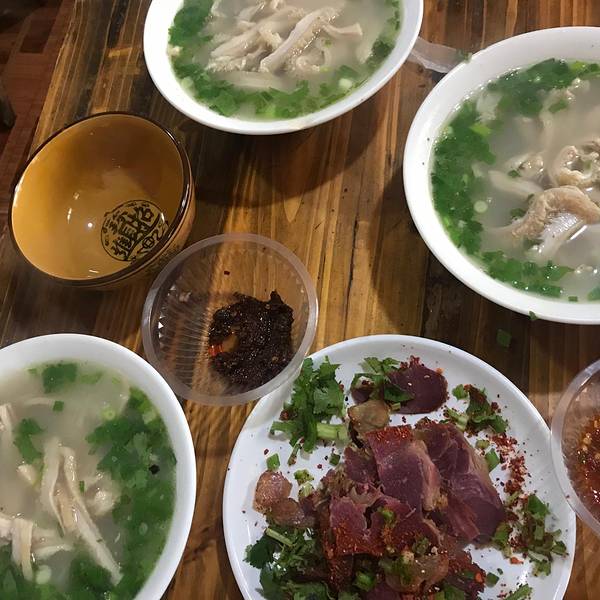 就是我们通常叫的“苍蝇馆子”超级好吃,老板态度超级好,我们一家三口,两碗牛杂汤,小份卤牛肉,撑死了