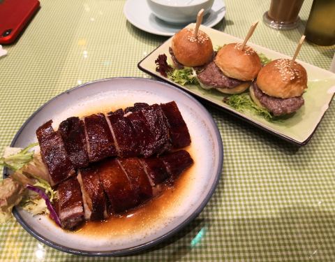 ...,没有什么惊艳的地方,服务员服务水平不错,个人感觉烧鹅味道不错,餐品配色不错,总体来说过得去吧