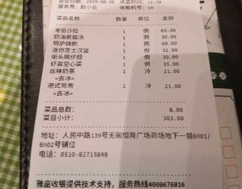 环境优美,味道鲜美,菜肴符合无锡人的口味。五香肉丁河粉太淡了,不是恨满意