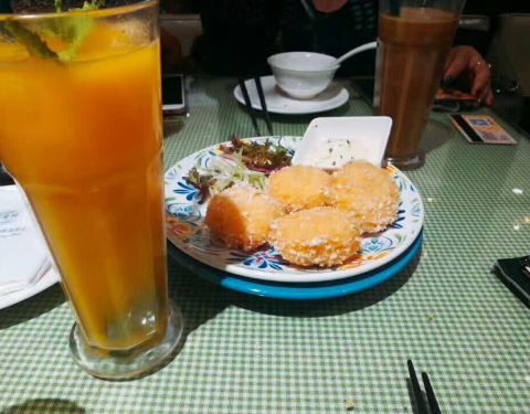 在恒隆广场负一楼。浓浓的南洋风情,冰火菠萝油10元一只一切为二上桌比较方便两个人分,味道不错,奶酥味浓,还脆脆的,很好吃。