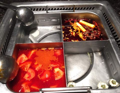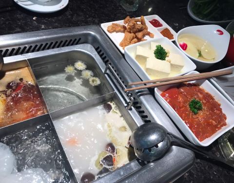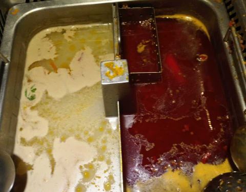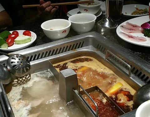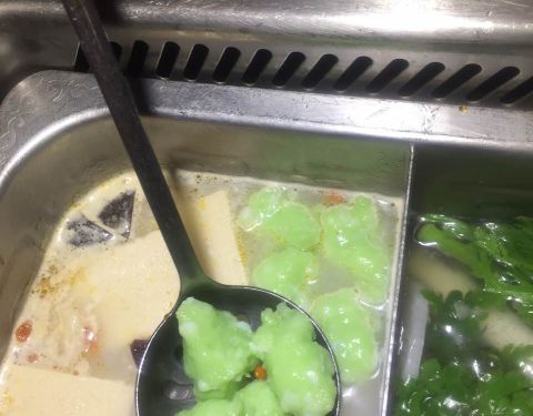 最喜欢吃猪脑,脑汁不够用咯。还是四宫格划算,两个人四十多的锅底,一共两百零八,吃的很饱