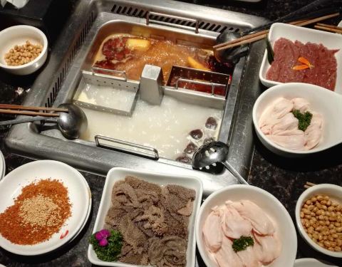 服务超好的!味道可以!水果随便吃两个人吃了179元,就桌上的东西!