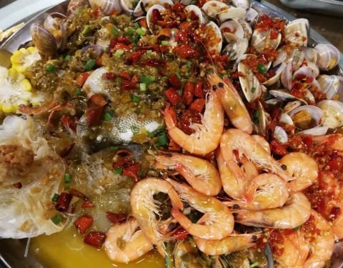 这里的海鲜太好吃了,帝王蟹第一次吃过,也是第一次见过,统统都是蒸熟的,下面是煮粥,蒸虾,花甲粉丝,玉米,等等太多好吃的了。