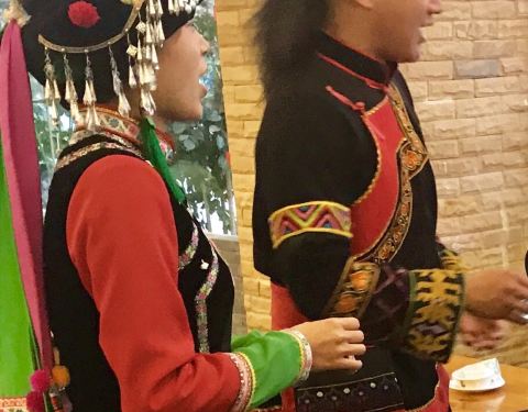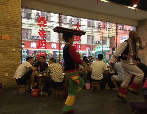 家常菜的价位,还是很有少数民族特色,不算辣,所有人都能接受。一般打民族饭店招牌的最多穿民族服装,这里老板老板娘还桌桌敬酒跳舞上菜。