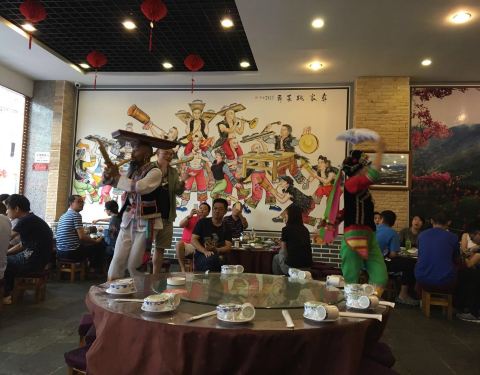 附近点评最高的一家 很有特色 小桌子小板凳 每次上菜都会 - 不过上菜方式独特,跳舞上菜且有祝酒歌