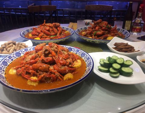 在靖江的中饭,姐姐推荐的两种口味龙虾简直棒极了,香辣和蒜泥,还第一次吃蒜泥口味的,龙虾弄的很卫生,非常放心,姐姐朋友带着小宝贝都愿意来,可就说明这家店多么让人放心了,还点了些菜,菜的口味偏甜,江南的韵味,可是味道还是不错的,量也很足。可是价位有点小贵,要是多些优惠就更好啦。