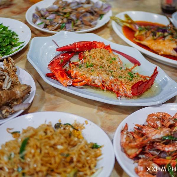 包车司机推荐的网红露天餐厅,分为二个区域,前面是以排为单位的一家家餐厅,后面是卖海鲜的摊位。 餐厅的环境简易但是干净整洁,使用的餐具服务员会再次用开水消毒。卖海鲜的摊位明码标价统一价格。买好的海鲜...