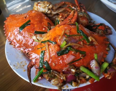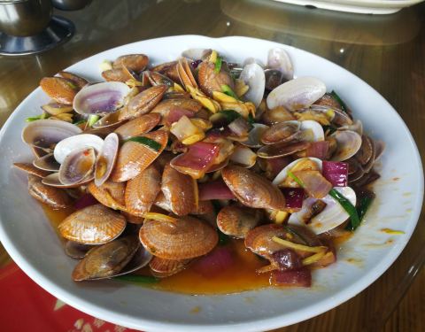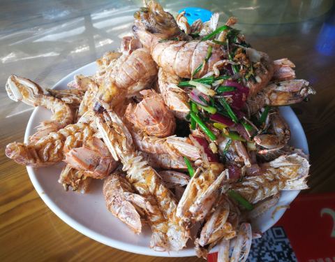 包车司机推荐的网红露天餐厅,分为二个区域,前面是以排为单位的一家家餐厅,后面是卖海鲜的摊位。 餐厅的环境简易但是干净整洁,使用的餐具服务员会再次用开水消毒。卖海鲜的摊位明码标价统一价格。买好的海鲜餐厅服务员会帮忙加工,收取费用。 食材新鲜,口味鲜美。清蒸、椒盐、蒜香每款都适合我们。