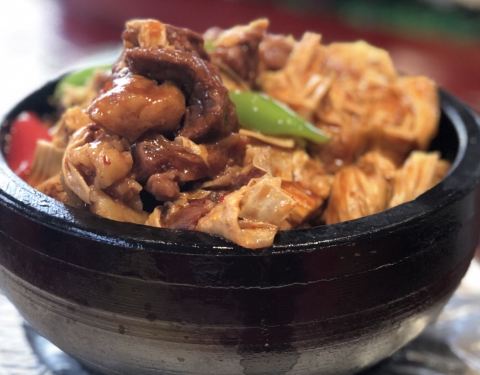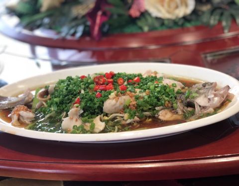 我不是托~在山西靠近左云县这里 这家酒店是最好的~~定的包间 逼格跟上海格局差不多 厨房和包间门是2个 这个标配 可以算是高级别的了 但是我看自助太便宜 怕比较坑爹 建议大家选包厢自己点菜 婚宴 家宴 生日宴基本很多 我们是在3楼 包厢有自动旋转的圆桌和一套沙发 包厢有专门的固定的服务员 我们没有选他们的套餐 自己单点的 感觉比套餐性价比更高 更符合大家口味 12个人点多了 都打包了回家喂鸡 我只写留下印象的和好吃的菜~ 冷菜: 香椿苗拌桃仁(是嫩核桃,只有西北才有的特色核桃)、乡村莜面(墙裂推荐)、盐焗花生、酸奶紫薯(这个不待见,剩的最多,大部分进了鸡的肚子里了),口水鸡一般(就2-3个人吃过)、碧玉欠丝(有芥末) 热菜: 烤鸭(味道不错)、风味炉鱼、蒜蓉粉丝开背虾、毛血旺、砂锅森林菌(味道赞)、炭烧肘子、石锅腐竹牛腩、老厨师过油肉(这个是当地特色菜,纯瘦肉,好吃)、宫廷虾酱窝窝头(虾酱味道吃不惯,主要是窝窝头)、松仁玉米、鱼香肉丝、烧麦、泡泡糕(这边重大节日必吃菜)等 没想到县城的包厢可以如此逼格~~900元12个人