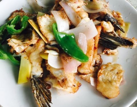另外的鱼头炒炸,也超美味,配菜也很入味,辣椒圈,蒜蓉都好鲜美。实在值得给赞