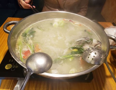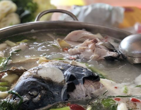 这家店的鱼真的很鲜,是云台特色鱼火锅,汤底很好,把桂花鱼的鲜味完全展现出来~调料一份麻酱的,一份花椒油+鸡纵油,两个小料搭配着吃,真的太香了,鱼肉鲜嫩,吃起来超级舒服!环境也不错,没有风的话坐在外面小院子里很惬意~