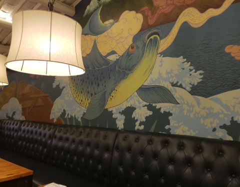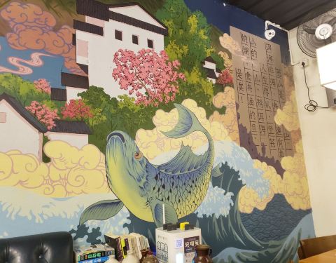 餐桌餐椅比较脏。但环境看起来比较有情调。他家的镜鲤(老板说是桂花鱼,其实不是)味道还是很不错的!蘸料什么的也很有特色,值得推荐。